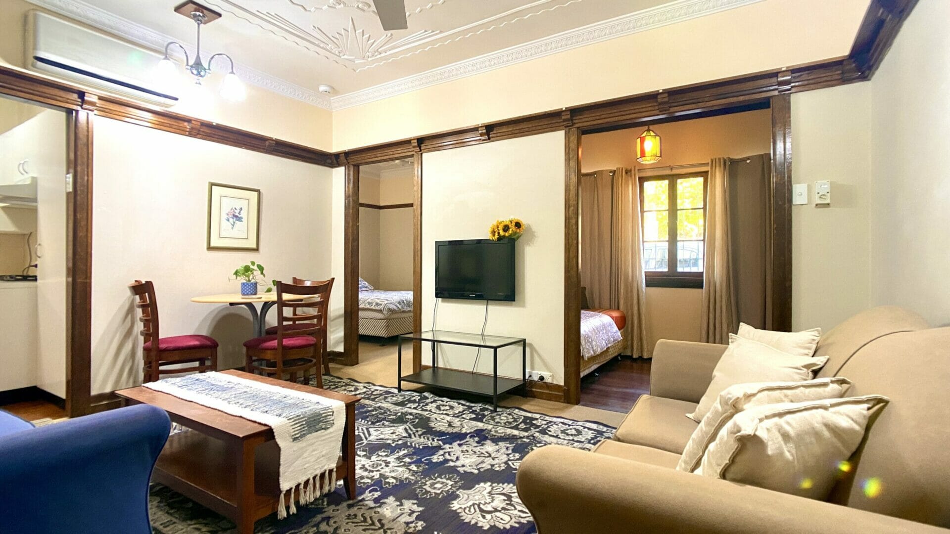 This great large two bedroom fully furnished apartment is ideal for a single person or couple with children and has a friendly homely feel.